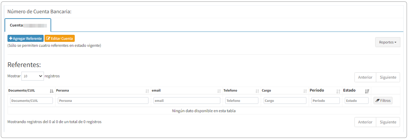 Se abrirá una pantalla donde deberá agregar hasta cuatro referentes en el siguiente orden jerárquico: