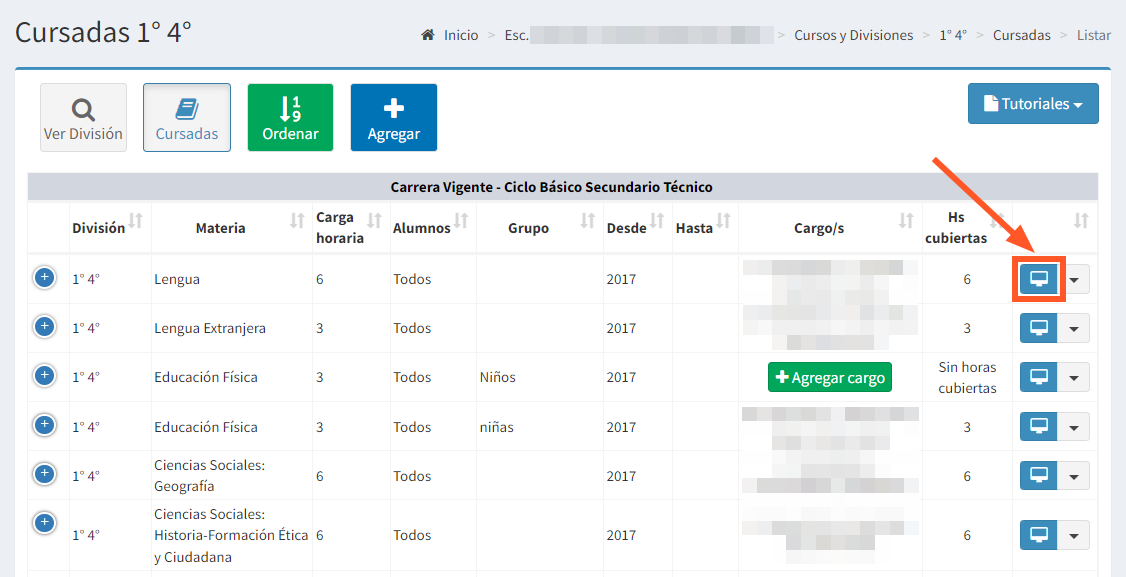 Se asignan o eliminan haciendo clic en Usuarios dentro del Curso y División sobre el cual se desee dar acceso.